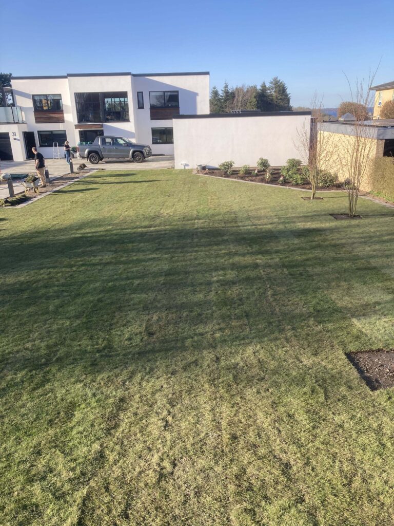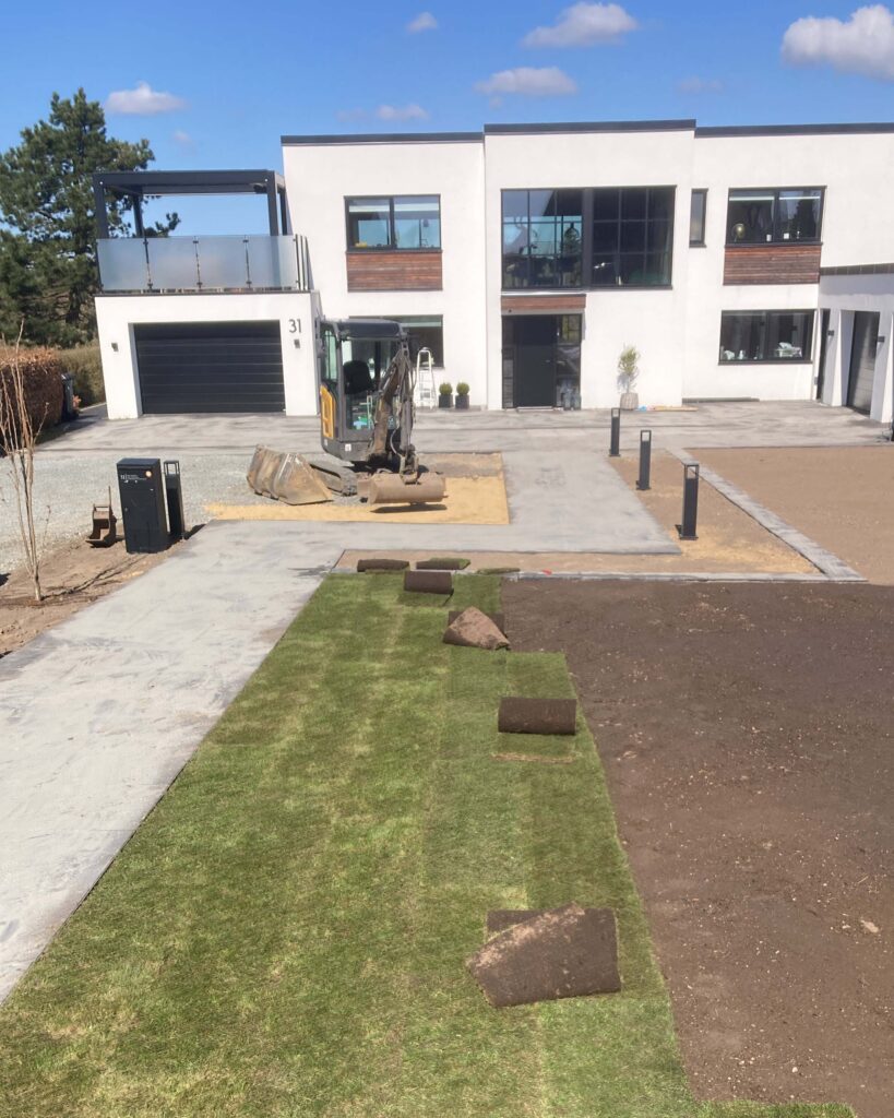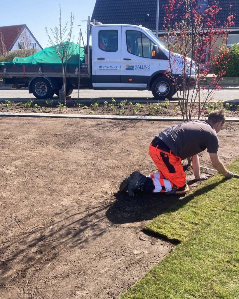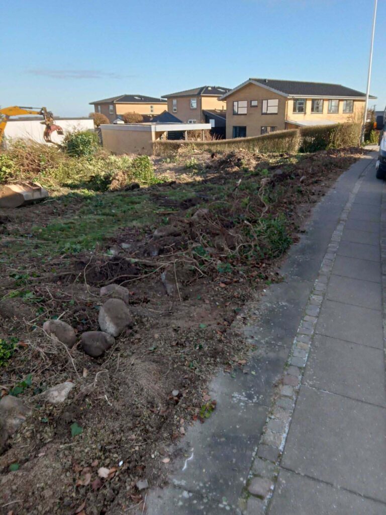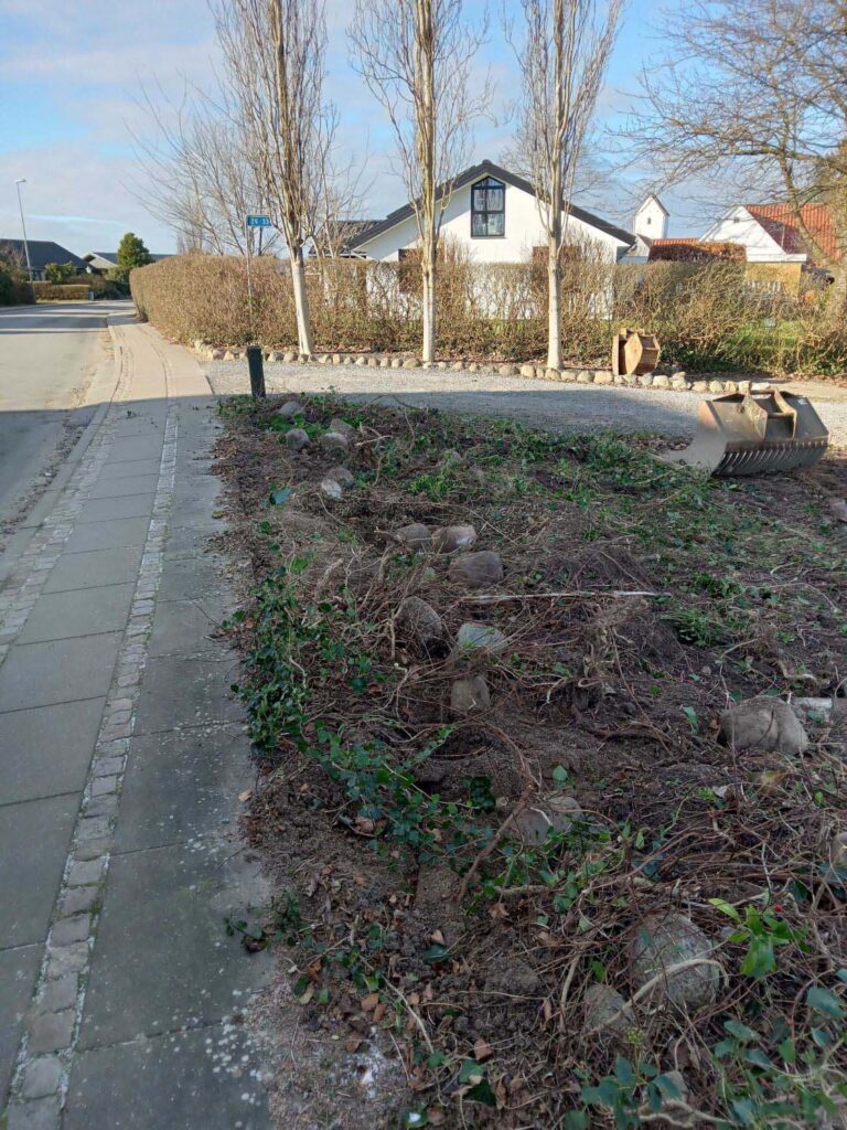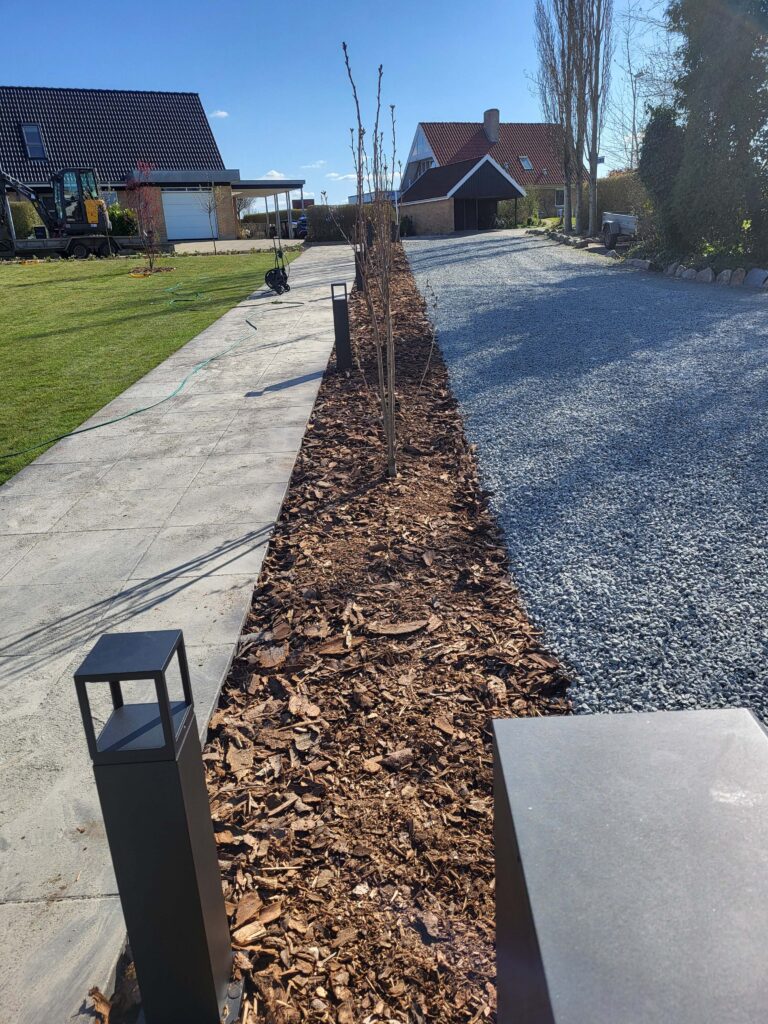 Her har vi ryddet og genopbygget en smuk have med fokus på helhed og brug. Der er anlagt sti i antracitgrå fliser, lagt rullegræs og lavet surbundsbed med rhododendron. Et hjertetræ fungerer som havens visuelle anker, mens paradisæble skaber afskærmning udefra uden at tage udsynet indefra.
