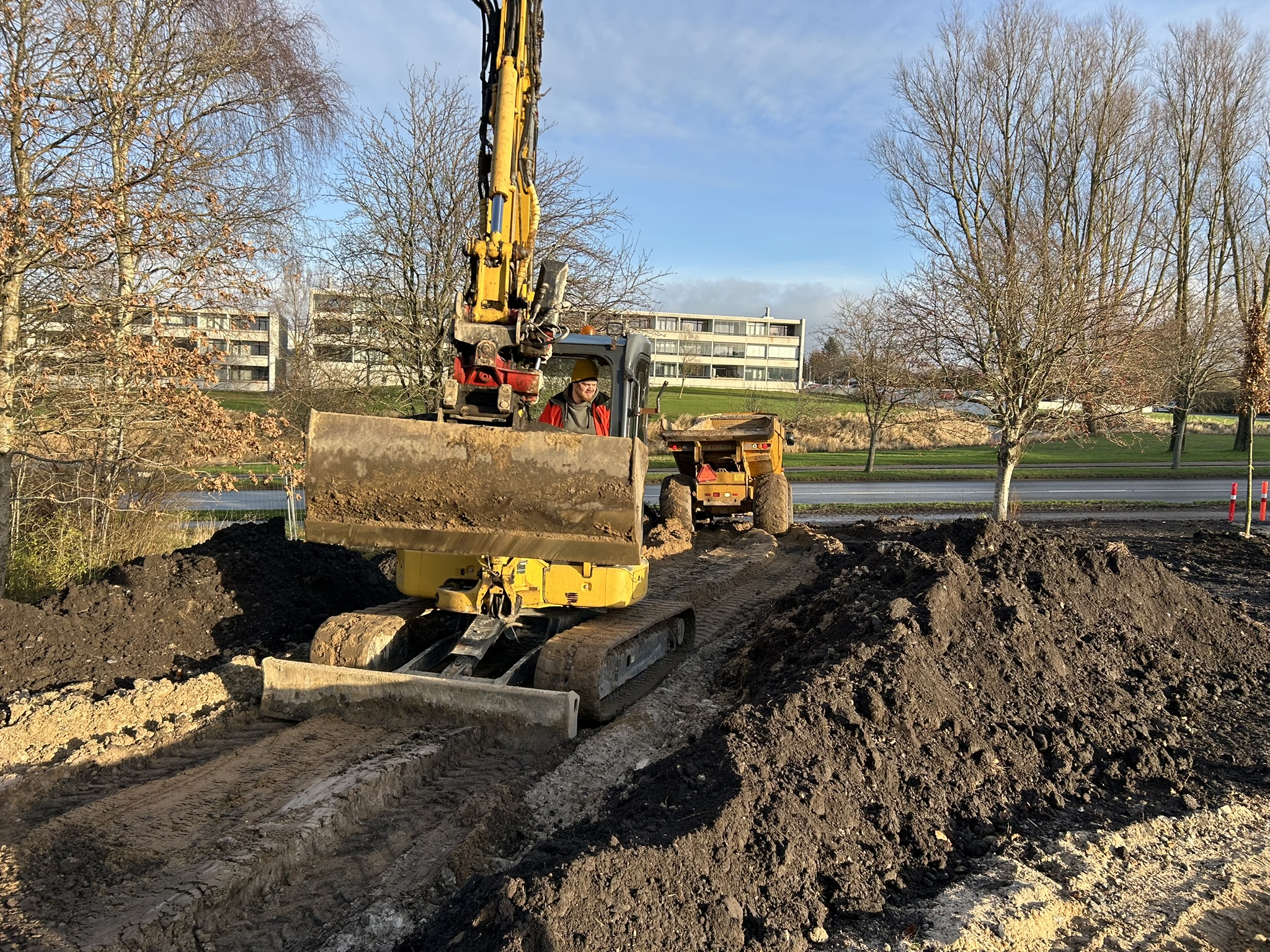 Ved nybyggeri og anlægsarbejde er et præcist udført gravearbejde afgørende for et godt resultat. Vi klarer udgravning til fundamenter, veje, ledningsarbejde og anlæg – og sørger for, at terrænet bliver reguleret, så det passer til projektets højdekurver og drænforhold.